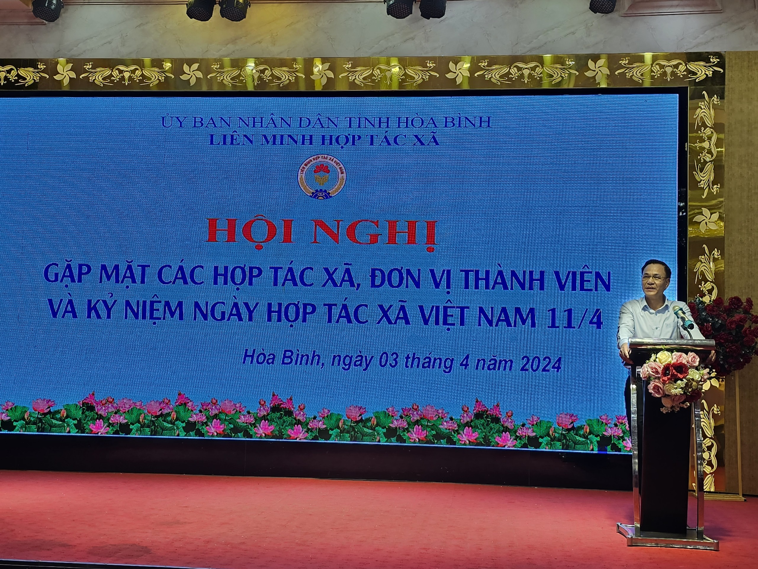Ngày 3/4, Liên minh Hợp tác xã (LM HTX) tỉnh Hòa Bình tổ chức gặp mặt các HTX, đơn vị thành viên và kỷ niệm ngày HTX Việt Nam 11/4. Đến dự có các đồng chí: Nguyễn Mạnh Cường, Phó Chủ tịch LMHTX Việt Nam; Đinh Công Sứ, Phó Chủ tịch UBND tỉnh; đại diện các sở, ngành và 130 HTX, đơn vị thành viên trên địa bàn tỉnh.