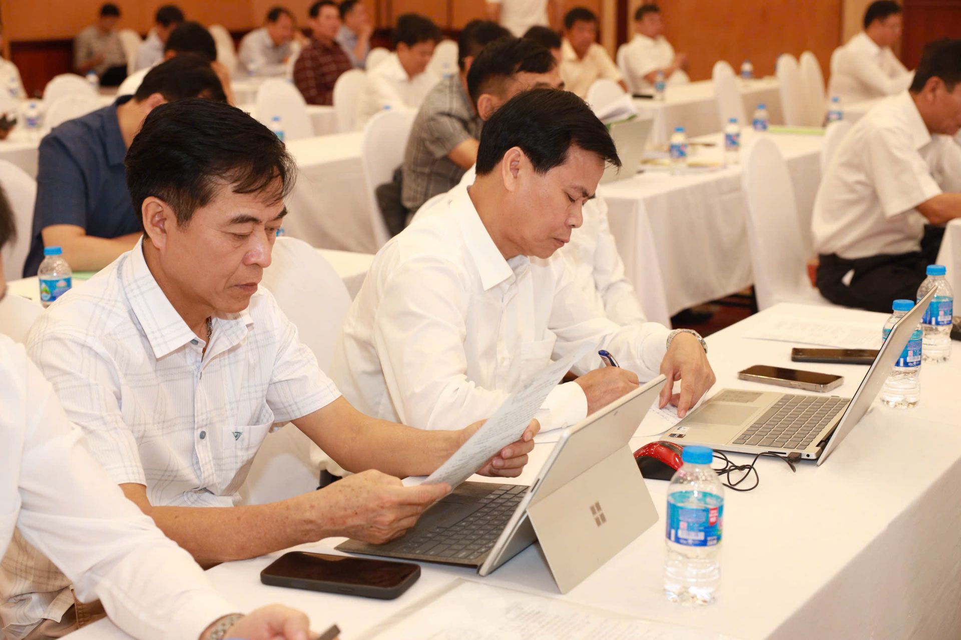 Đồng chí Phạm Minh Sơn - Phó Trưởng ban Tổ chức - Kiểm tra báo cáo tại Hội nghị
