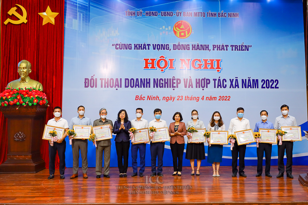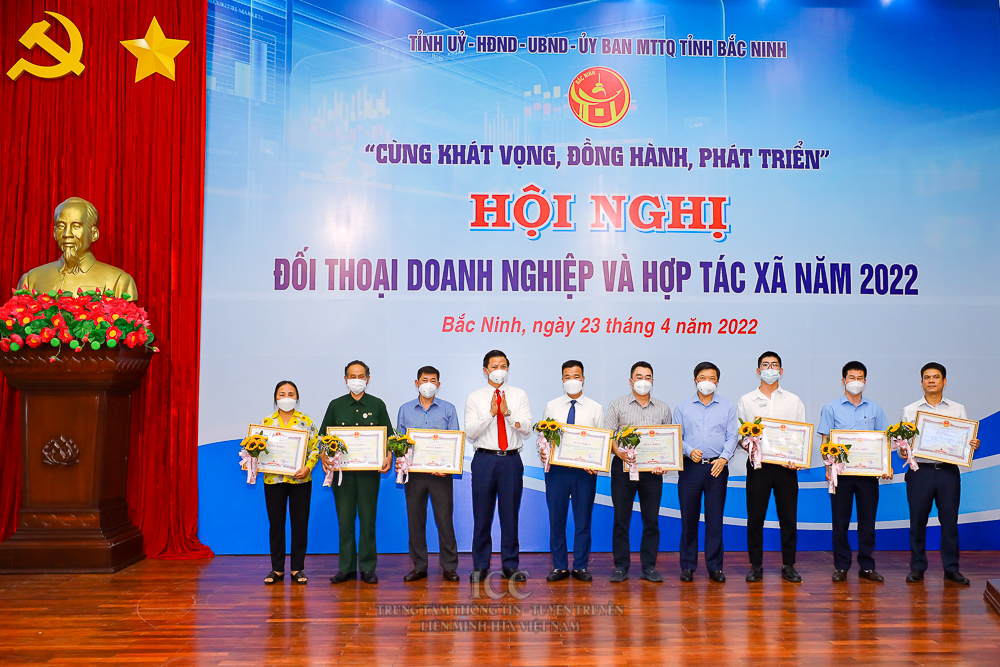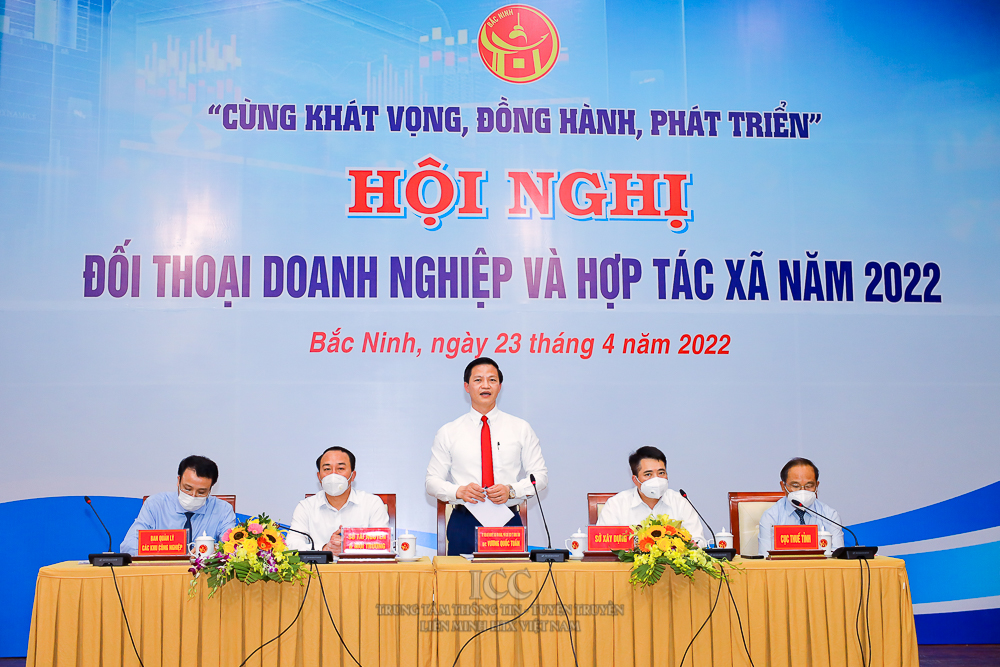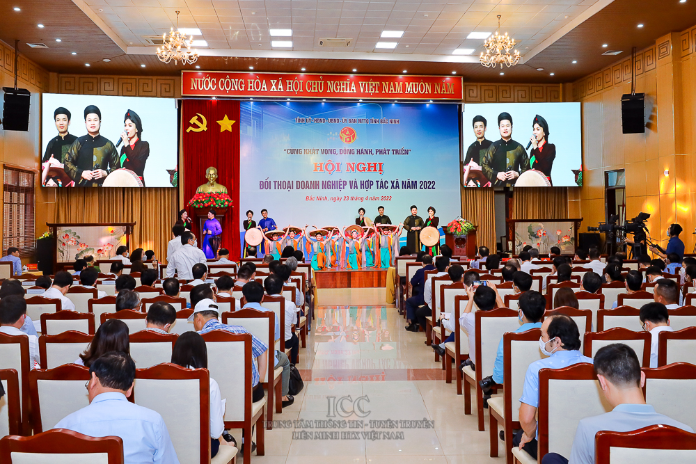 Chiều 23/4, tại Trung tâm Văn hóa Kinh Bắc, thành phố Bắc Ninh, Tỉnh ủy, HĐND, UBND, Ủy ban Mặt trân tổ quốc tỉnh Bắc Ninh tổ chức Hội nghị đối thoại doanh nghiệp và hợp tác xã (HTX) năm 2022 với chủ đề "Cùng khát vọng, đồng hành, phát triển". Hội nghị có sự tham gia của 260 doanh nghiệp, HTX trên địa bàn tỉnh.