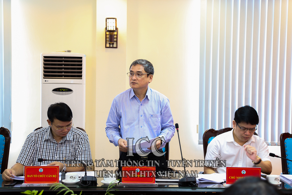 Đồng chí Phạm Ngọc Toại, Chánh văn phòng Liên minh HTX Việt Nam báo cáo tại hội nghị