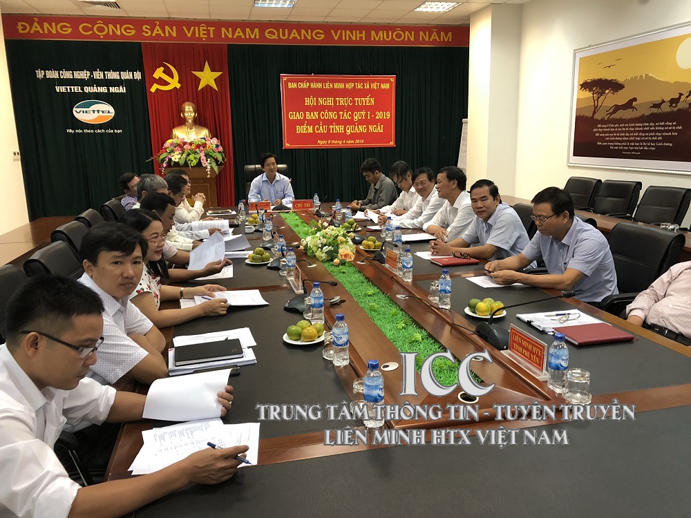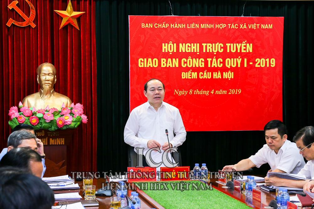 Sáng ngày 8/4, tại 10 điểm cầu trên toàn quốc, hệ thống Liên minh HTX Việt Nam tổ chức Hội nghị giao ban trực tuyến quý I/2019 với Liên minh HTX 63 tỉnh/TP để đánh giá tình hình phát triển kinh tế hợp tác, HTX và hoạt động của hệ thống Liên minh HTX Việt Nam quý I/2019, triển khai nhiệm vụ trọng tâm quý II/2019.