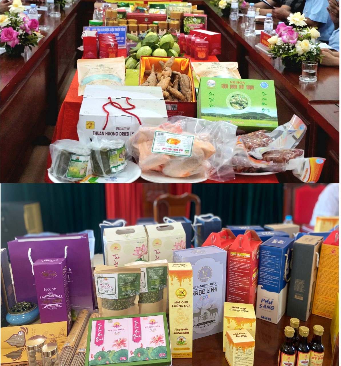 Bên cạnh đó, các đại biểu tại điểm cầu tỉnh Hà Tĩnh cũng thông tin về một số sản sản phẩm OCOP, đặc trưng, tiêu biểu với tiềm năng xúc tiến thương mại của các tỉnh như: Cam của HTX Nông nghiệp Gia Phúc, HTX Nông nghiệp và Dịch vụ Thảo Vân; các sản phẩm từ sen của HTX Nông nghiệp Sen Hào Thành; nhung hươu và các sản phẩm chế biến từ nhung hươu của HTX Hươu sao Ngọc Linh…
