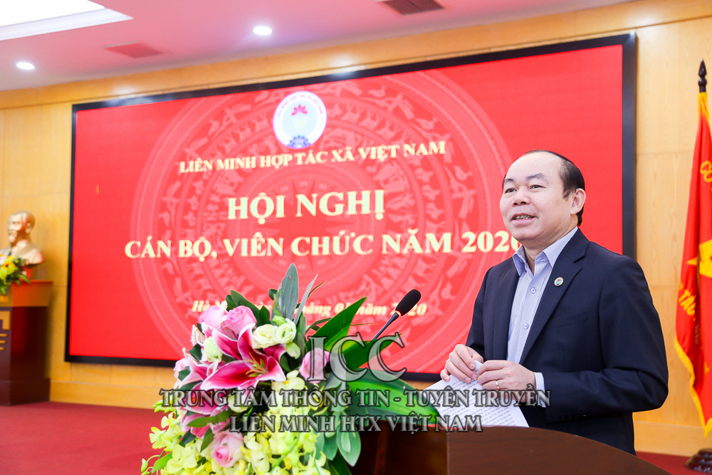 Sáng ngày 16/01, tại Hà Nội, Liên minh HTX Việt Nam tổ chức Hội nghị cán bộ, viên chức cơ quan Liên minh HTX Việt Nam để tổng kết, đánh giá tình hình hoạt động năm 2019 và triển khai thực hiện nhiệm vụ trọng tâm năm 2020.