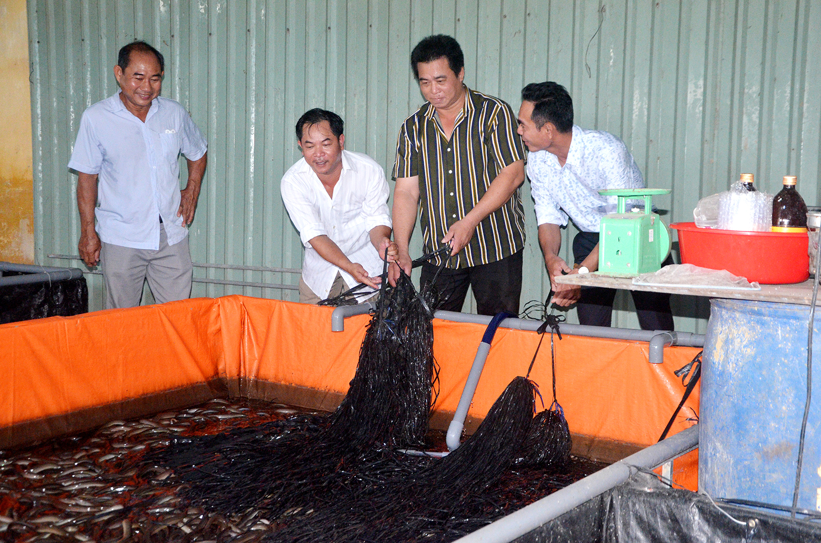 Khách hàng tham quan khu vực lươn thành phẩm tại HTX Phước Lập, TP. Bà Rịa.