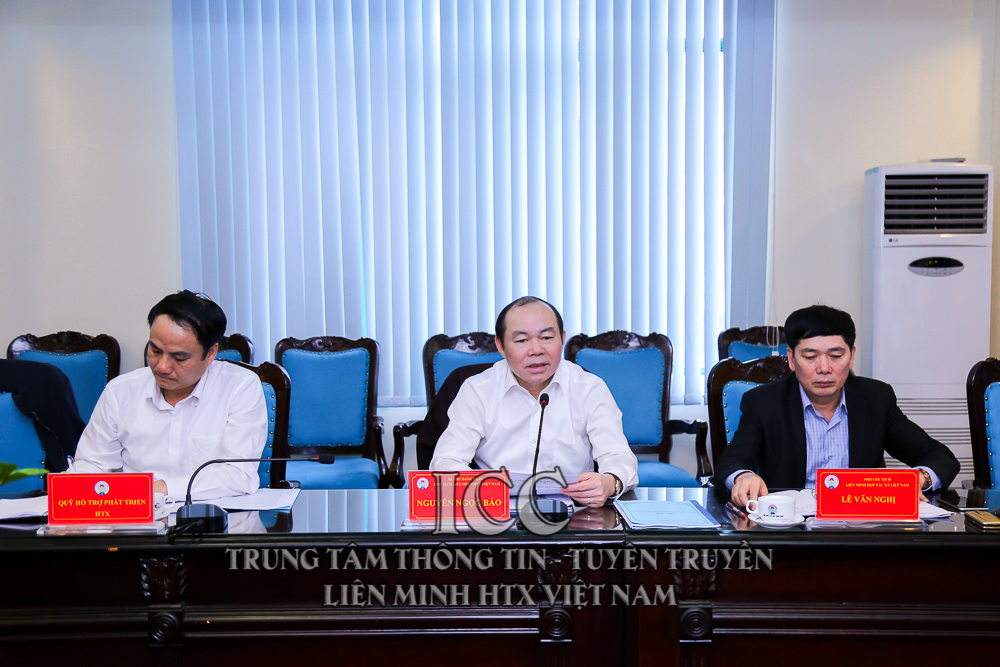 Đồng chí Nguyễn Ngọc Bảo, Bí thư Đảng đoàn, Chủ tịch Liên minh HTX Việt Nam phát biểu tại buổi làm việc
