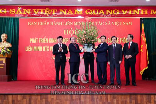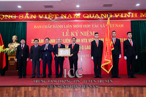 Phó Thủ tướng Vương Đình Huệ thừa ủy quyền Chủ tịch Nước trao Huân chương lao động hạng Nhất cho Liên minh HTX Việt Nam vào dịp Lễ kỷ niệm 25 năm thành lập Liên minh HTX Việt Nam