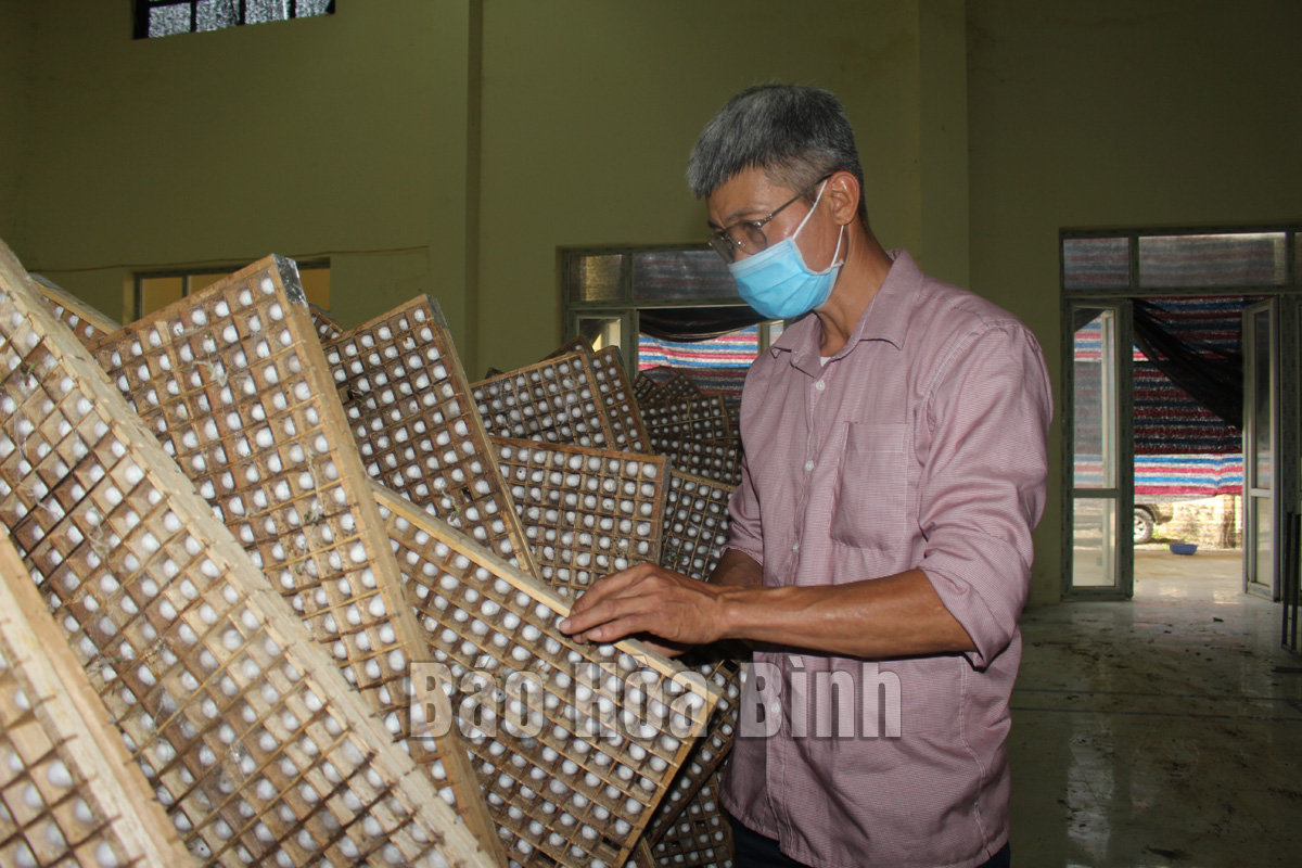 Hợp tác xã kỹ thương đồn điền Chi Nê, xã Phú Nghĩa (Lạc Thủy) liên kết với các hộ dân để phát triển vùng nguyên liệu trồng dâu - nuôi tằm.