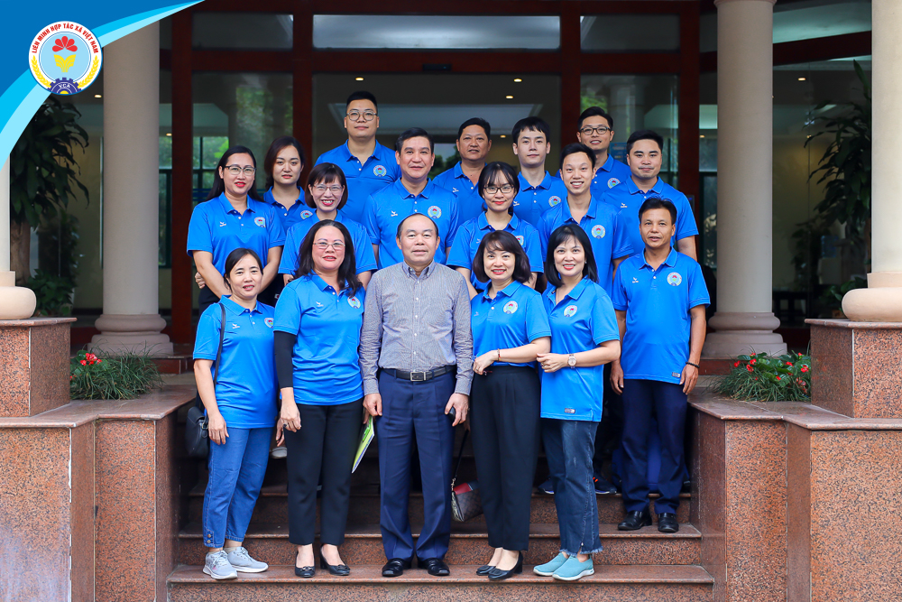 Đồng chí Nguyễn Ngọc Bảo, Bí thư Đảng đoàn, Chủ tịch Liên minh Hợp tác xã Việt Nam chụp ảnh lưu niệm cùng đoàn vận động viên Liên minh Hợp tác xã Việt Nam