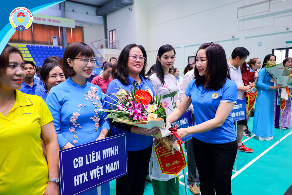 Đoàn vận động viên Liên minh Hợp tác xã Việt Nam nhận cờ và hoa của Ban tổ chức