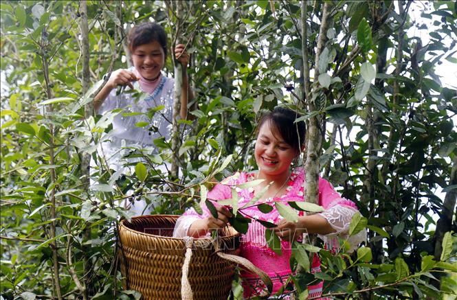 Người dân xã Hồng Thái, huyện Na Hang, tỉnh Tuyên Quang thu hái chè Shan tuyết. Ảnh: Vũ Quang/TTXVN