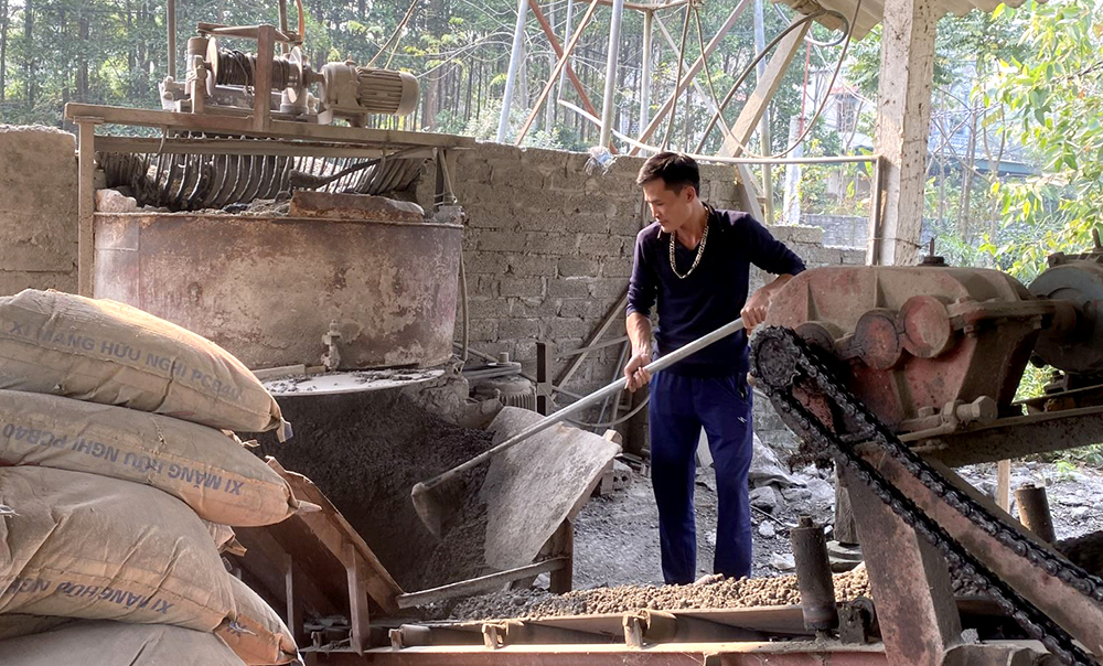 Anh Mậu trực tiếp thực hiện các công đoạn sản xuất gạch tại xưởng.