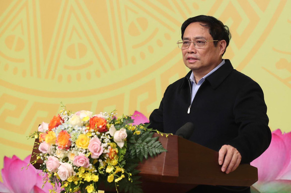 Thủ tướng Phạm Minh Chính phát biểu chỉ đạo hội nghị sáng 15-2 tại đầu cầu Hà Nội - Ảnh: VGP