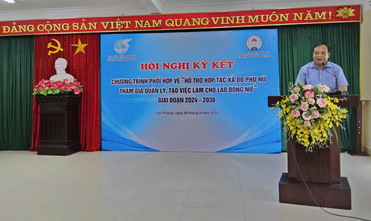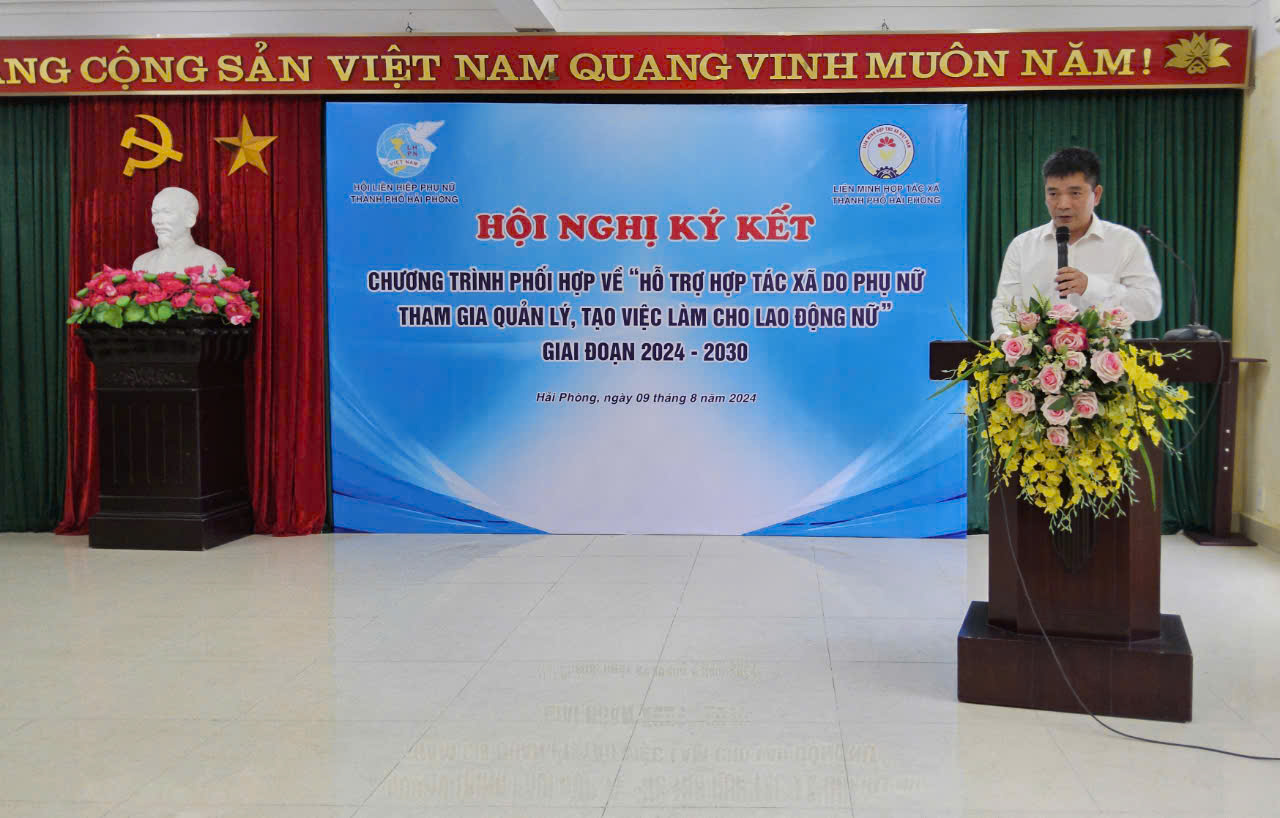 Ngày 09/8/2024, Liên minh Hợp tác xã TP Hải Phòng và Hội Liên hiệp Phụ nữ thành phố tổ chức ký kết Chương trình phối hợp về “Hỗ trợ hợp tác xã do phụ nữ tham gia quản lý, tạo việc làm cho lao động nữ” giai đoạn 2024-2030”.