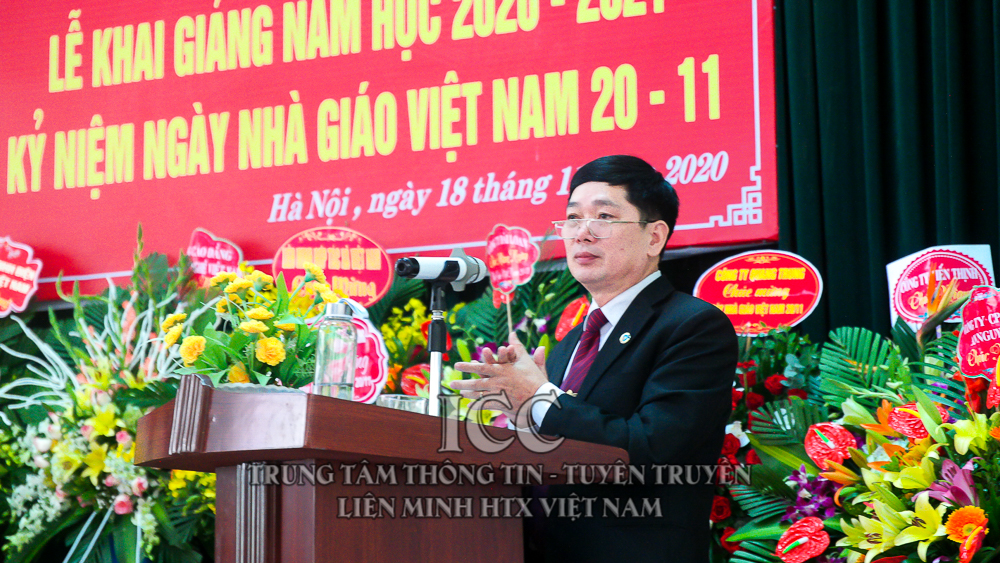 Phát biểu tại buổi lễ, đồng chí Lê Văn Nghị - Phó Chủ tịch Liên minh HTX Việt Nam đã ghi nhận những đóng góp của thầy và trò Nhà trường cho lĩnh vực kinh tế tập thể, kinh tế HTX và chúc mừng tới Ban giám hiệu Nhà trường qua các thời kỳ, các thế hệ thầy cô giáo, các cán bộ, giảng viên, cùng toàn thể học sinh, sinh viên của trường.