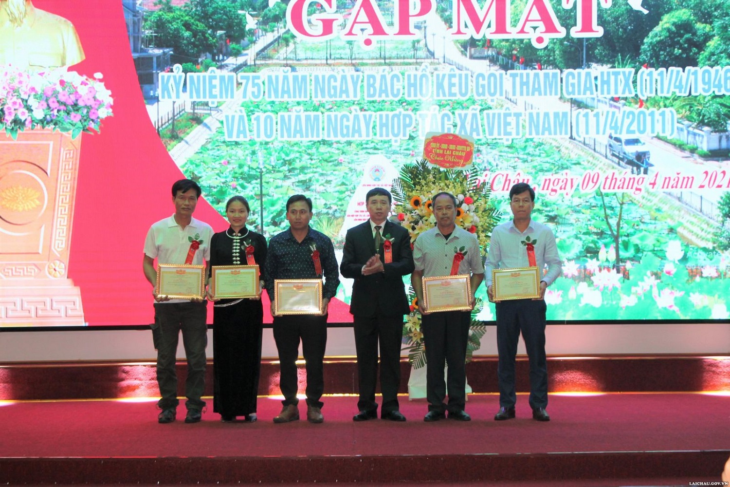 Ông Bùi Xuân Thu - Chủ tịch Liên minh HTX tỉnh Lai Châu trao giấy khen cho các tập thể, cá nhân