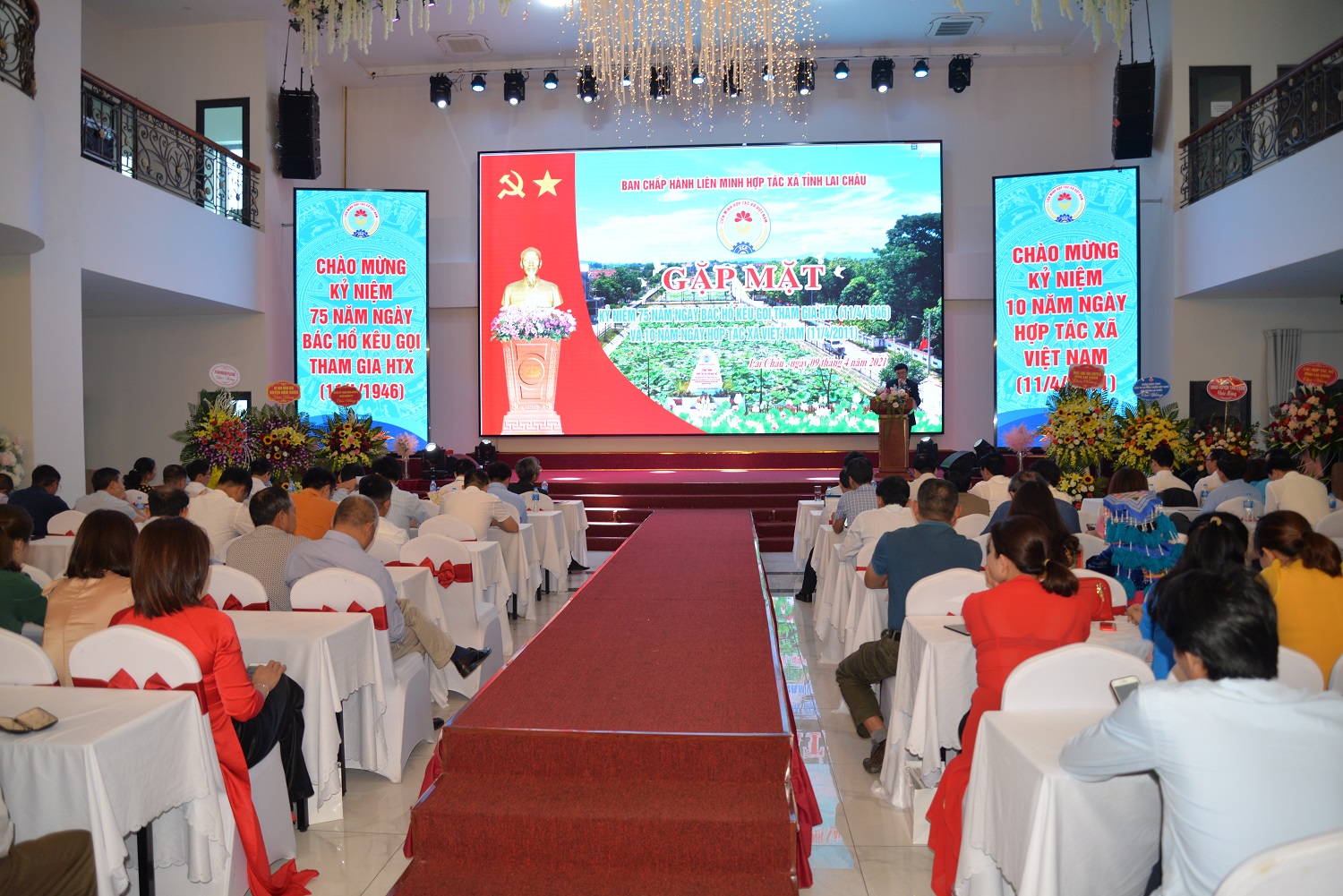 Tại buổi Gặp mặt, các đại biểu đã ôn lại 75 năm Ngày Bác Hồ kêu gọi tham gia HTX (11/4/1946 - 11/4/2021). Trải qua 75 năm hình thành, xây dựng và phát triển, phong trào Hợp tác xã (HTX) cả nước nói chung và Lai Châu nói riêng đã vượt qua nhiều khó khăn, thách thức, từng bước thoát khỏi cơ chế quản lý cũ, hình thành mô hình HTX kiểu mới, đóng góp vào quá trình phát triển kinh tế - xã hội.