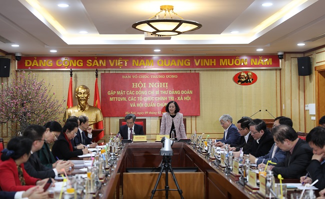 Nhân dịp đầu Xuân, đồng chí Trương Thị Mai gửi đến các đại biểu những lời chúc tốt đẹp cùng mong muốn các đồng chí Bí thư Đảng đoàn MTTQ Việt Nam, các tổ chức chính trị - xã hội và hội quần chúng tiếp tục dành nhiều tâm huyết để xây dựng các tổ chức ngày càng phát triển vững mạnh, xứng đáng với sự tin cậy của Đảng và các tầng lớp nhân dân.