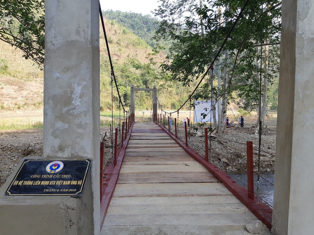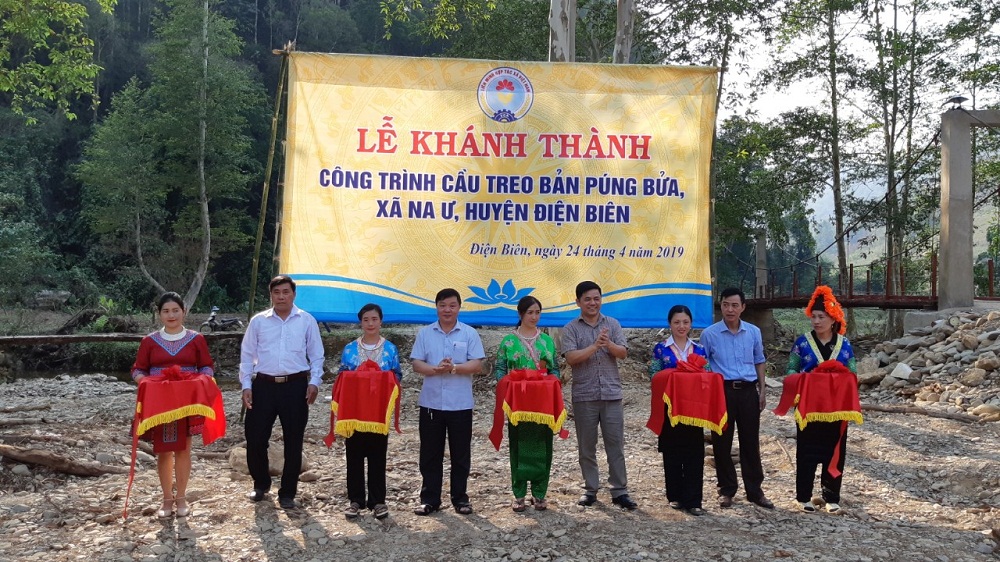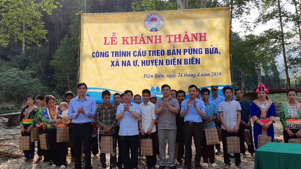 Được sự quan tâm, giúp đỡ nhiệt tình của Công đoàn Liên minh HTX Việt Nam, đã vận động cán bộ viên chức Liên minh HTX Việt Nam ủng hộ kinh phí xây dựng công trình; sự chung tay sẻ chia khó khăn của Liên minh HTX tỉnh Bà Rịa - Vũng Tàu và Liên minh HTX tỉnh Điện Biên, sau 2 tháng chuẩn bị đầu tư và tổ chức thi công, công trình cầu treo dân sinh Bản Púng Bửa đã được xây dựng và lắp đặt xong theo đúng thiết kế kỹ thuật.