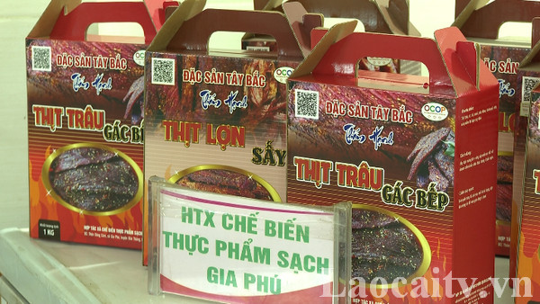 Hợp tác xã Chế biến thực phẩm sạch Gia Phú ở huyện Bảo Thắng có 5 sản phẩm OCOP 3 sao, gồm: Thịt lợn sấy, thịt trâu sấy, thịt ba chỉ lợn hun khói, lạp sườn hun khói và xúc xích lợn. Để có được 4 - 5 tạ sản phẩm mỗi tháng, hợp tác xã đã liên kết với các hộ chăn nuôi để mua trên 1 tấn thịt tươi đầu vào. Bà Vũ Thị Thắm, Gián đốc HTX Chế biến thực phẩm sạch Gia Phú cho biết: "Chúng tôi đã liên kết với các mối hàng cung cấp thực phẩm sạch. Năm vừa rồi sản phẩm bán ra khá nhiều, công nhân có việc làm và thu nhập ổn định".