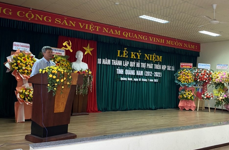 Sáng ngày 1/7/2022, tại thành phố Tam Kỳ, tỉnh Quảng Nam. Quỹ Hỗ trợ phát triển hợp tác xã Quảng Nam tổ chức long trọng lễ kỷ niệm 10 năm thành lập. Tham dự Lễ có ông Lê Văn Nghị - Phó Chủ tịch Liên minh HTX Việt Nam; ông Hồ Quang Bửu- Phó Chủ tịch UBND tỉnh Quảng Nam, các đại biểu đại diện Quỹ Hỗ trợ phát triển HTX Việt Nam, Văn phòng Liên minh HTX Việt Nam khu vực miền Trung – Tây Nguyên, đại diện lãnh đạo các sở, ngành đoàn thể của tỉnh; lãnh đạo UBND các huyện, thị xã, thành phố, lãnh đạo Liên minh HTX tỉnh.