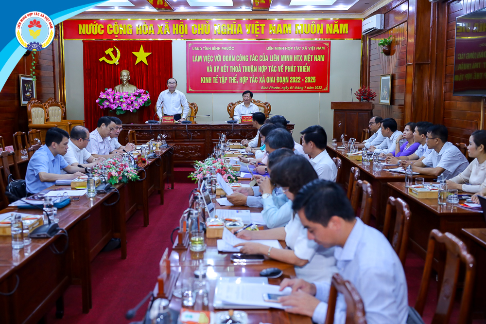 Phát biểu tại buổi làm việc, đồng chí Nguyễn Ngọc Bảo, Bí thư Đảng đoàn, Chủ tịch Liên minh Hợp tác xã Việt Nam đánh giá cao những nỗ lực của tỉnh Bình Phước trong chuyển đổi và phát triển HTX, tổ hợp tác xã trên địa bàn. Đồng thời, đề nghị tỉnh Bình Phước tiếp tục tập trung bồi dưỡng đội ngũ cán bộ tại các HTX; tăng cường các hoạt động hỗ trợ vốn tín dụng cho các HTX phát triển sản xuất, kinh doanh; tập trung hỗ trợ đầu tư các trang thiết bị nhất là các thiết bị công nghệ nhằm đổi mới, ứng dụng khoa học công nghệ và sản xuất các sản phẩm; có chính sách khuyến khích phát triển các mô hình HTX nông nghiệp quy mô lớn gắn với các chuỗi sản phẩm… Thời gian tới Liên minh Hợp tác xã Việt Nam sẽ hỗ trợ Bình Phước xây dựng một số mô hình HTX kiểu mẫu theo chuỗi gắn sản xuất với thị trường.