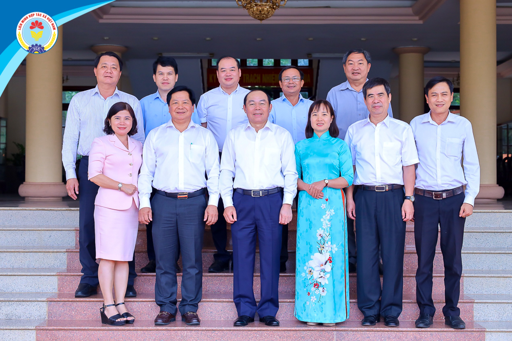Đoàn công tác Liên mih Hợp tác xã Việt Nam chụp ảnh lưu niệm cùng lãnh đạo UBND tỉnh Bình Phước