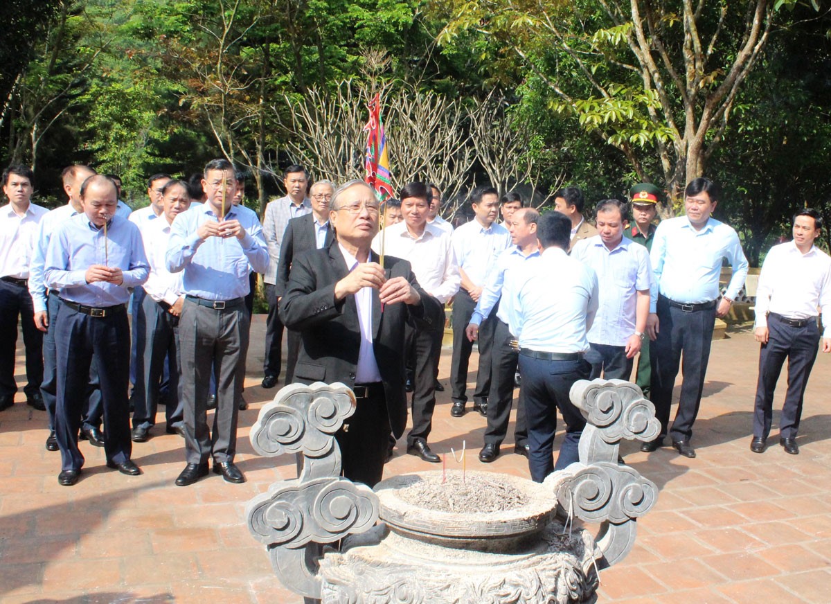 Đồng chí Trần Quốc Vượng cùng các đồng chí lãnh đạo Liên minh HTX Việt Nam và tỉnh Hoà Bình dâng hương tại Khu di tích lịch sử cách mạng Chùa Khánh