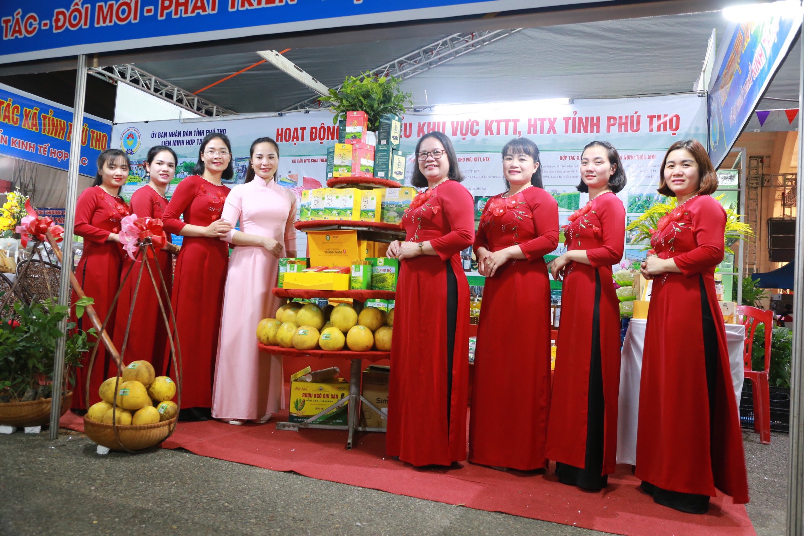 Tại Hội chợ này, Liên minh HTX tỉnh Phú Thọ đã tham gia trưng bày, giới thiệu trên 30 sản phẩm đến từ các HTX trên địa tỉnh Phú Thọ, như: Sản phẩm bưởi Đoan Hùng, chè xanh Phú Thọ, mì gạo Hùng Lô, bánh trưng Đất Tổ, thịt chua Thanh Sơn, trà lá sen hồng sâm Liên Hoa Chi, gạo nếp gà gáy Mỹ Lung, tương Dục Mỹ, các sản phẩm mật ong...Các sản phẩm mang đến hội chợ đều đạt chứng nhận Ocop 3 sao, 4 sao, có đầy đủ chứng nhận an toàn, truy suất nguồn gốc…