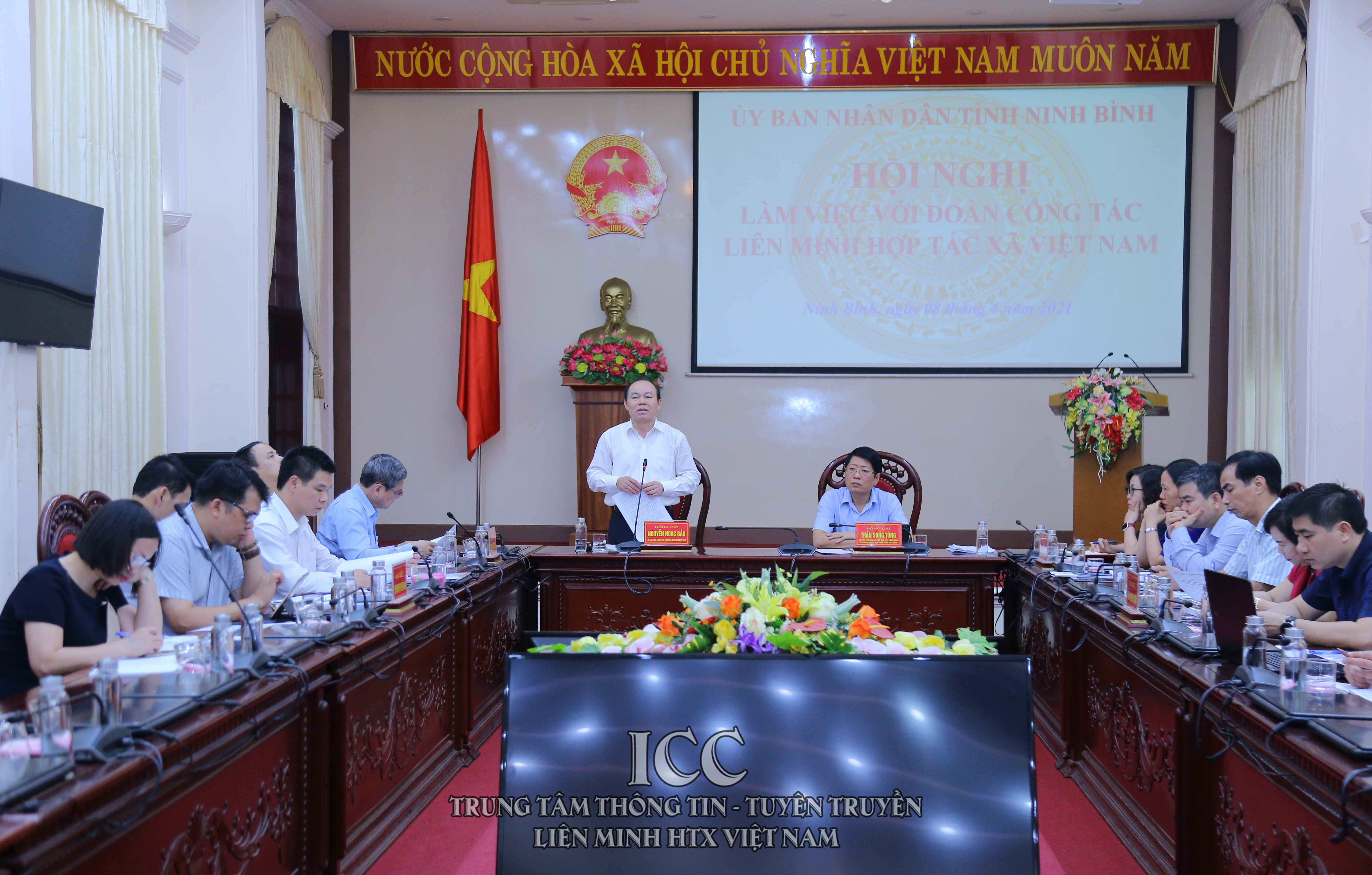 Tại buổi làm việc, các đại biểu nghe báo cáo, kiến nghị, đề xuất của Liên minh HTX tỉnh Ninh Bình và các sở ban ngành của tỉnh Ninh Bình. Hai bên đã trao đổi thảo luận KTTT, HTX có tầm quan trọng nhưng vẫn còn nhiều hạn chế, nguồn lực hỗ trợ còn thiếu gặp nhiều khó khăn, việc thực hiện các chính sách còn chậm; năng lực đội ngũ cán bộ quản lý HTX hạn chế, chưa theo kịp và thích nghi với cơ chế thị trường, một số chưa thật sự gắn bó với HTX.