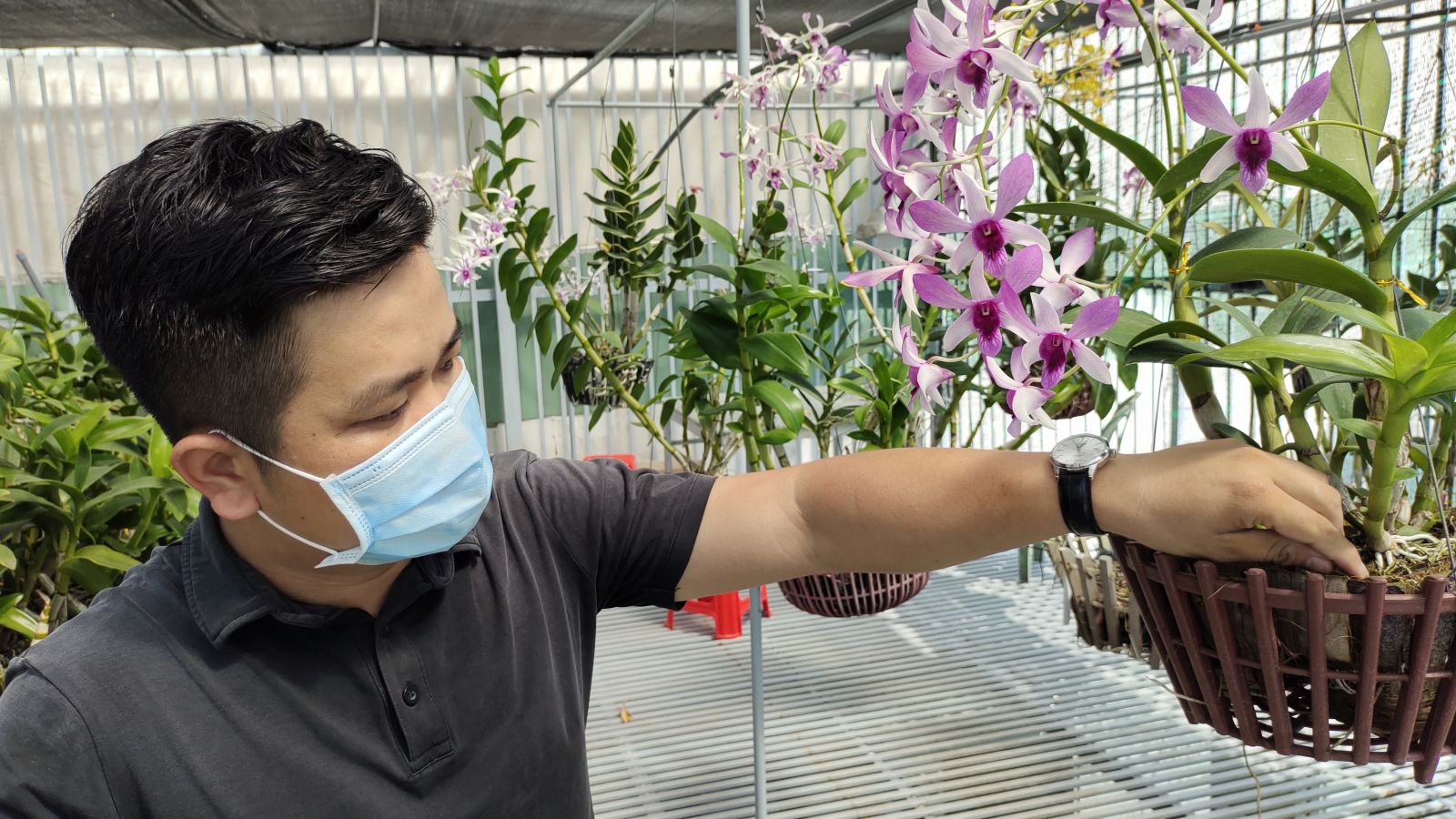 Giám đốc Hợp tác xã Phước Điền - Nguyễn Duy Phong cùng các thành viên nỗ lực chăm sóc, cho ra những chậu lan chất lượng, đáp ứng nhu cầu của khách hàng