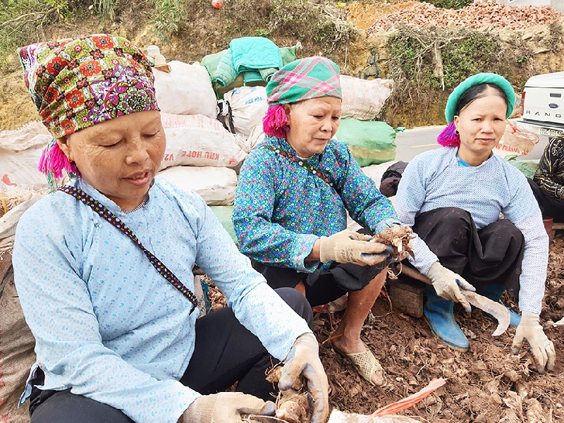 Giám đốc HTX Phát triển Đình Trung La A Lồng thay vì “chân chạy”, điện thoại nóng máy cả ngày như mọi năm thì năm nay có thời gian sửa sang nhà cửa, chơi cây cảnh, hay cùng nhau chén trà, chén rượu bữa tiệc tất niên với những người thân. Ông chủ Trần A Chiu, Phó Giám đốc HTX Dịch vụ nông nghiệp Húc Động cũng vậy. Đơn vị của anh đã nghỉ sản xuất từ 20 ngày trước, hàng cũng đã xuất xong từ 10 ngày trước. Việc của anh bây giờ chỉ là thong thả sang chơi nhà những hộ trồng dong cho gia đình, vận động họ mùa tới trồng nhiều dong lên để bán…