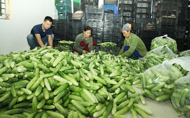 Mỗi ngày, HTX dịch vụ nông nghiệp, kinh doanh hàng nông sản An Hòa, xã An Hòa, huyện Tam Dương cung cấp cho thị trường 3-4 tấn dưa chuột. Ảnh Nguyễn Lượng