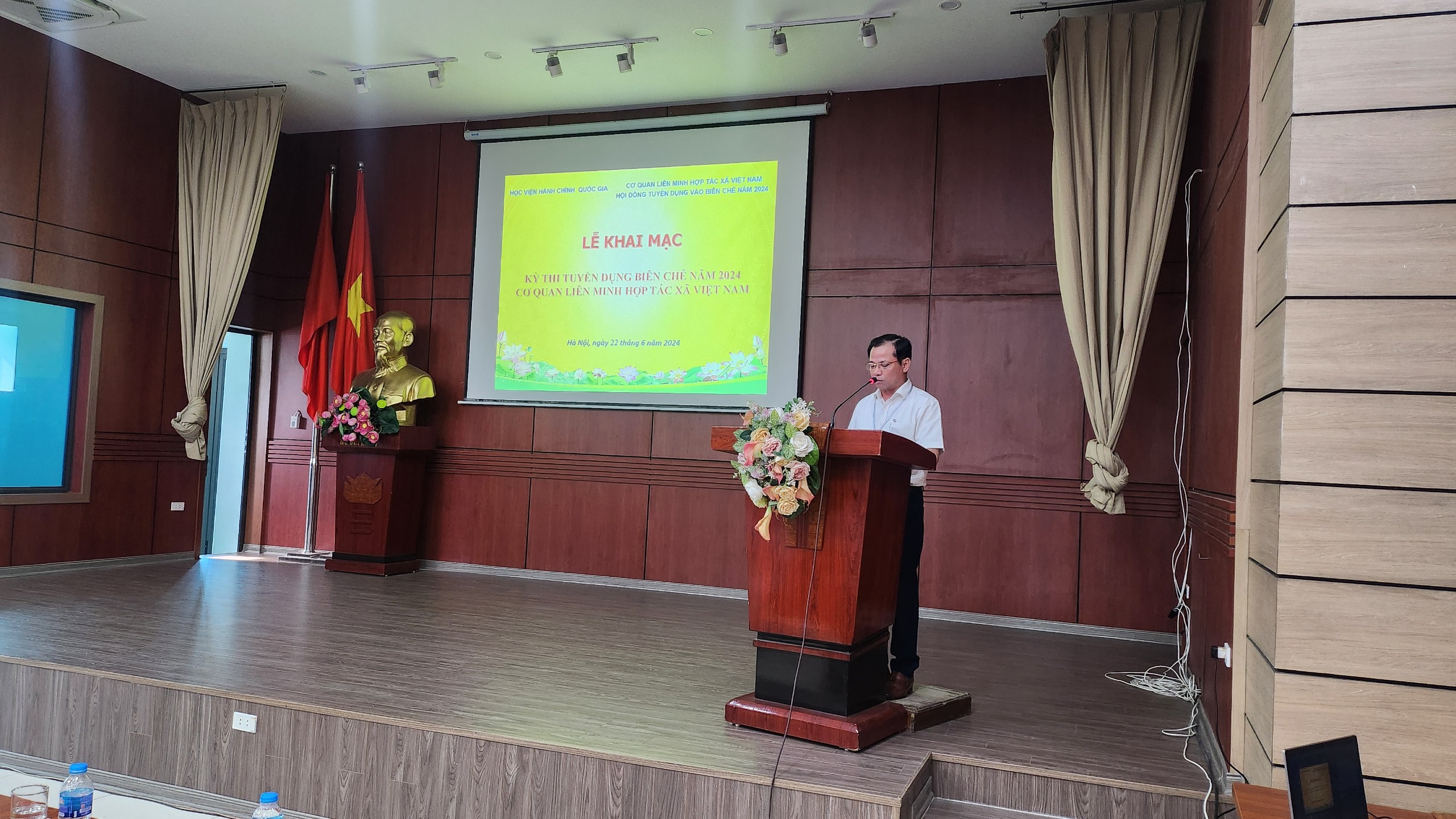 Sáng ngày 22/6, Cơ quan Liên minh Hợp tác xã Việt Nam phối hợp với Học viện Hành chính Quốc gia tổ chức kỳ thi tuyển vào biên chế Cơ quan. Tham dự Lễ khai mạc kỳ thi có đồng chí Cao Xuân Thu Vân, Bí thư Đảng đoàn, Chủ tịch Liên minh Hợp tác xã Việt Nam, đồng chí Nguyễn Quốc Sửu, Phó Giám đốc Học viện Hành chính Quốc gia cùng 154 thí sinh đủ điều kiện dự thi.