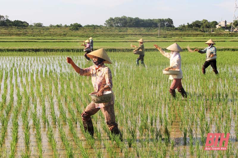 Huyện Nông Cống có diện tích sản xuất lúa năm 2021 đạt 20.200 ha. Để nâng cao hiệu quả kinh tế cho sản xuất lúa thương phẩm, huyện đã và đang thu hút doanh nghiệp mở rộng diện tích liên kết sản xuất và bao tiêu sản phẩm cho bà con nông dân. Theo đó, huyện tăng cường tuyên truyền, hướng dẫn, tập huấn cho người dân về các kỹ thuật mới trong sản xuất lúa giống. Đưa các giống lúa thương phẩm mới có năng suất, chất lượng, hiệu quả kinh tế cao, được người tiêu dùng ưa chuộng vào gieo trồng. Bên cạnh đó, tiếp tục nâng cao vai trò của các HTX dịch vụ nông nghiệp để thực sự là cầu nối giữa nông dân với doanh nghiệp trong liên kết sản xuất và tiêu thụ sản phẩm. Qua đó, huyện đã thu hút được nhiều doanh nghiệp đầu tư liên kết sản xuất và bao tiêu lúa thương phẩm cho bà con trên địa bàn, với tổng diện tích lúa thương phẩm được liên kết trong năm 2021 đạt gần 1.000 ha. Theo đánh giá của Phòng Nông nghiệp và Phát triển nông thôn, UBND huyện Nông Cống, diện tích lúa thương phẩm được liên kết với doanh nghiệp đạt năng suất bình quân 70 tạ/ha/vụ, cao hơn 7 đến 8 tạ/ha/vụ, lợi nhuận trên 1 ha cao hơn khoảng 20% so với diện tích sản xuất lúa đại trà.
