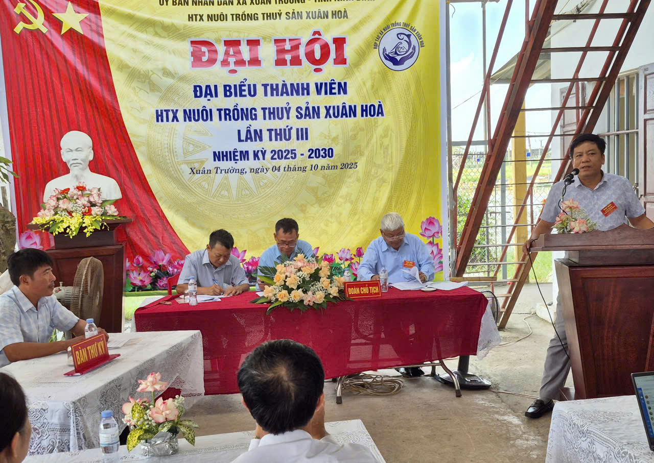 Ngày 04/10, Hợp tác xã nuôi trồng thủy sản Xuân Hòa, xã Xuân Trường tổ chức Đại hội đại biểu thành viên nhiệm kỳ 2025-2030. Dự đại hội có đồng chí Dương Anh Tuấn, Phó Chủ tịch; lãnh đạo phòng Tuyên truyền, Văn phòng Liên minh HTX tỉnh; lãnh đạo xã Xuân Trường cùng các đại biểu Chi cục Thủy sản tỉnh, các HTX, Quỹ TDND trên địa bàn xã, đại diện Câu Lạc bộ Liên minh (tỉnh Nam Định cũ) và 25 thành viên trong HTX tham gia đông đủ. Đại hội nhiệm kỳ 2025-2030, HTX nuôi trồng thủy sản Xuân Hòa diễn ra nhằm tổng kết kết quả sản xuất kinh doanh, xây dựng phương hướng nhiệm kỳ mới bám sát các quy định của Luật HTX năm 2023, những chủ trương về phát triển kinh tế, xã hội của địa phương cũng như mục tiêu lớn của HTX do các thành viên đề ra; xây dựng và kiện toàn tổ chức, bộ máy quản lý, điều hành đảm bảo đúng quy định. Trong nhiệm kỳ qua, HTX nuôi trồng thủy sản Xuân Hòa đạt được nhiều kết quả quan trọng: Với diện tích 25ha hàng năm cho thu hoạch 375 tấn cá thương phẩm đạt khoảng 25 tỷ đồng mỗi năm; đã triển khai xây bờ kè và đổ beton gần 1,5km chi phí trên 4 tỷ trong đó HTX đối ứng gần 800 triệu đồng; các sản phẩm tiêu biểu, đặc trưng đem lại hiệu quả và giá trị kinh tế nổi bật như Cá Lăng, Cá Quả, ...cả 3 sản phẩm trên đã được công nhận đạt OCop. Mục tiêu nhiệm kỳ mới, HTX sẽ có ít nhất 6 sản phẩm đạt tiêu chuẩn và công nhận OCop từ 3 sao, mở rộng thị trường, tiếp cận trực tiếp các cửa hàng giới thiệu sản phẩm tại khu vực trung tâm của tỉnh Ninh Bình như Phố cổ Hoa Lư, các điểm du lịch, nhà hàng...