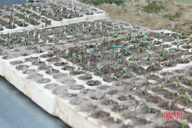 ...sau 10 ngày, khi cây bắt đầu ra hai lá là có thể tách bầu để trồng.