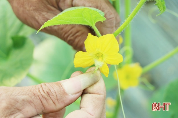 Để cho cây đậu quả tỉ lệ cao, ông Thiên trực tiếp thụ phấn cho hoa, thời điểm thích hợp nhất là lúc sáng sớm. Bởi, thời điểm đó phôi hoa chưa bị khô do nắng chiếu vào.
