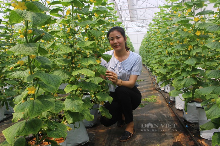 Mô hình trồng dưa leo baby trong nhà lưới công nghệ cao của chị Nguyễn Thị Trâm ở xã Minh Tân, huyện Lương Tài (Bắc Ninh). Ảnh: Thu Hà