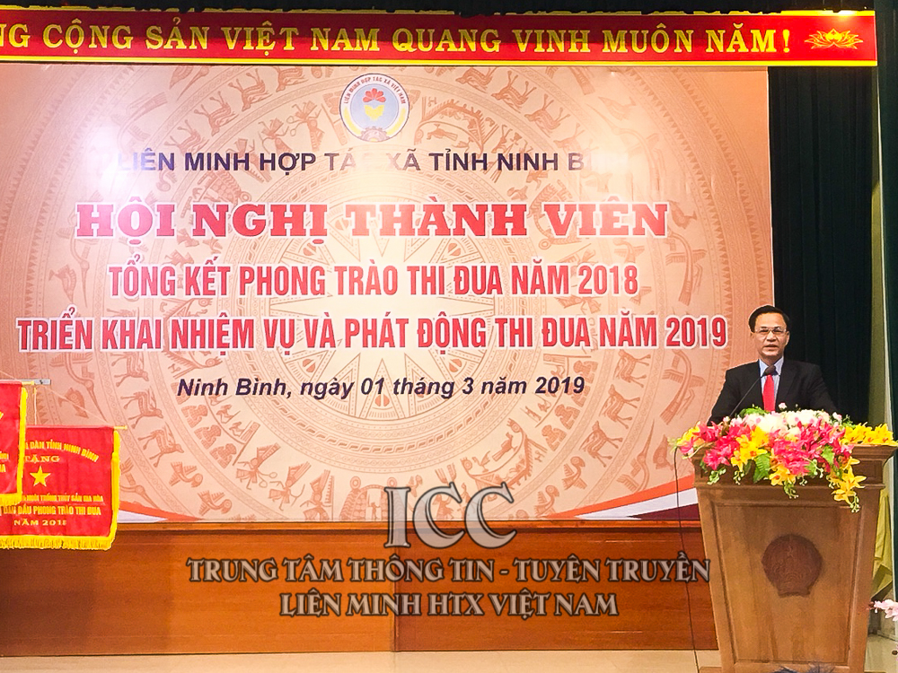 Thay mặt Ban Chấp hành Liên minh HTX tỉnh Ninh Bình, Chủ tịch Lê Thị Tâm phát động phong trào thi đua năm 2019 với chủ đề “Phát triển KTHT, HTX nhanh và bền vững”. Với phương châm: “Đoàn kết, kỷ cương, bứt phá, sáng tạo hiệu quả” kêu gọi toàn bộ thành viên cùng tham gia, đóng góp trí tuệ, công sức, phấn thực hiện tốt các phong trào thi đua yêu nước trong đó cần tập trung thực hiện tốt một số nhiệm vụ: Đẩy mạnh tuyên truyền, nâng cao nhận thức về vai trò, vị trí, bản chất và giá trị của HTX kiểu mới; Tiếp tục tham mưu triển khai các chính sách phát triển KTTT trên địa bàn tỉnh; Tập trung nguồn lực hỗ trợ triển khai Đề án xây dựng mô hình HTX gắn với chuỗi giá trị; Tăng cường công tác chỉ đạo, kiện toàn, củng cố tổ chức, bộ máy các HTX đảm bảo đúng Luật 2012; Nâng cao chất lượng các hoạt động tư vấn, hỗ trợ thành viên của Liên minh HTX tỉnh.