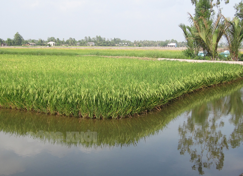 Mô hình tổ hợp tác trồng lúa sạch xen nuôi tôm ở huyện Thạnh Phú đạt hiệu quả cao.