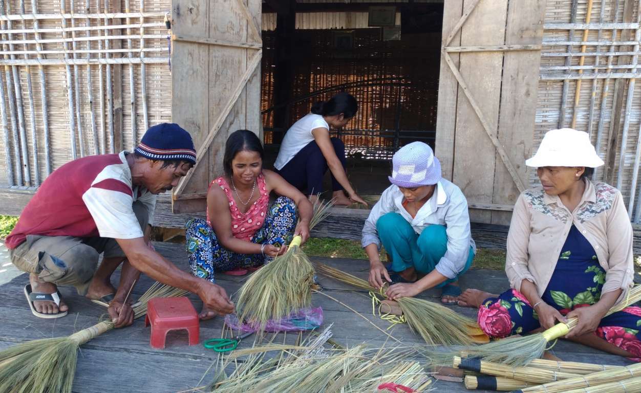 Tổ hợp tác chổi đót Bông Mây làng Kà Đừ, thị trấn Sa Thầy với 7 thành viên tham gia. Ảnh: Q.Đ
