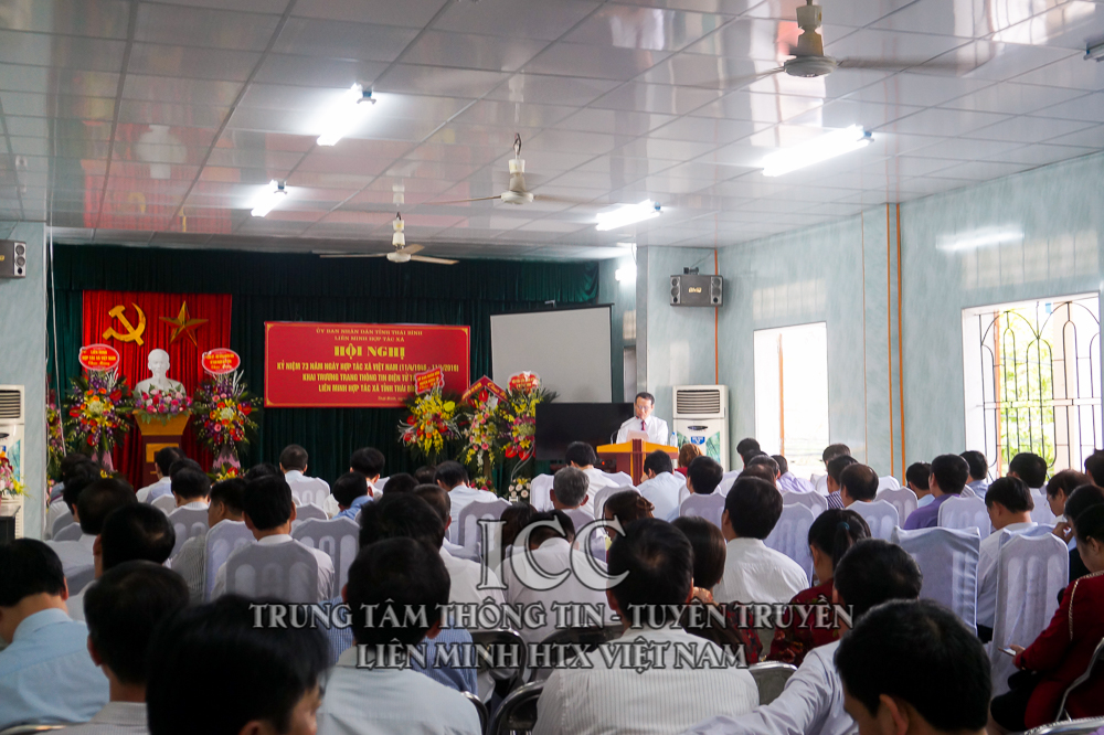 Phát biểu tại Hội nghị, đồng chí Nguyễn Văn Thịnh, Phó Chủ tịch Liên minh HTX Việt Nam hoan nghênh sự cố gắng của Liên minh HTX tỉnh Thái Bình trong việc xây dựng trang tin thông tin điện tử. Đồng chí Phó Chủ tịch nhận định, trang tin điện tử của Liên minh HTX tỉnh Thái Bình ra đời sẽ là kênh tuyên truyền đường lối của Đảng, chính sách pháp luật của Nhà nước đối với kinh tế hợp tác, hợp tác xã; giới thiệu các mô hình hợp tác xã kiểu mới, các điển hình tiên tiến trong khu vực kinh tế tập thể; hướng dẫn phát triển kinh tế hợp tác xã trên địa bàn tỉnh.