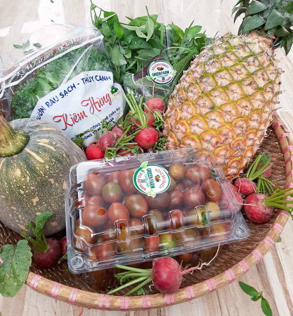 Các sản phẩm nông sản hữu cơ của HTX Sản xuất rau sạch Nông trại xanh.