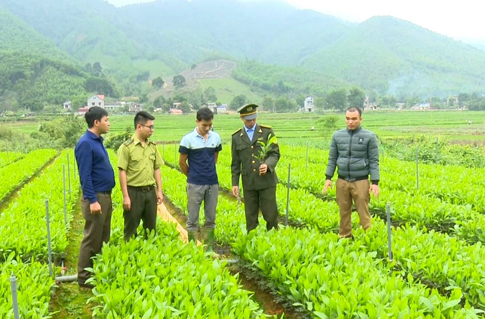 Hạt Kiểm lâm huyện Thanh Sơn kiểm tra chất lượng cây giống tại vườn ươm.