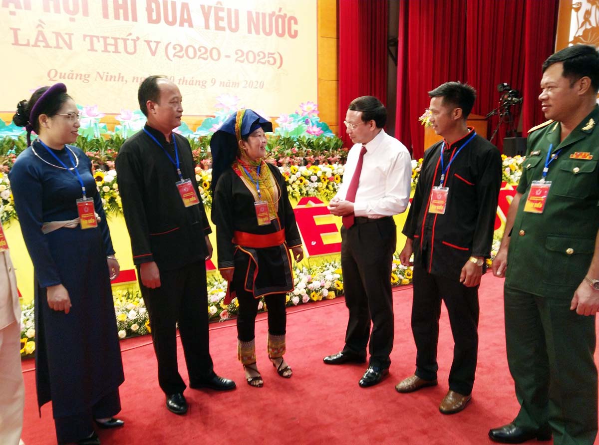 Đồng chí Nguyễn Xuân Ký, Bí thư Tỉnh ủy, Chủ tịch HĐND tỉnh, trò chuyện với các đại biểu DTTS dự Đại hội Thi đua yêu nước tỉnh Quảng Ninh lần thứ V, tháng 9/2020.