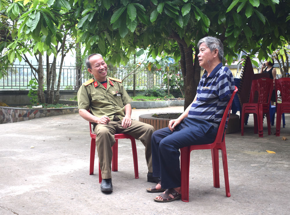Ông Thuần (bên trái) thường quan tâm đến đời sống của các CCB trên địa bàn.