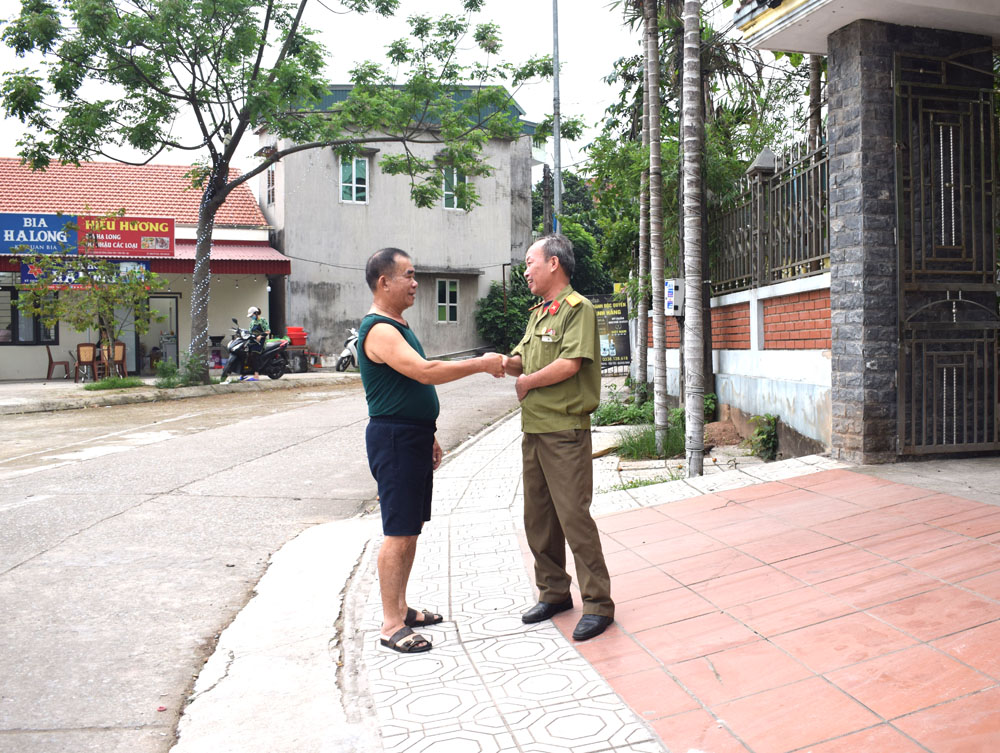 | Là Trưởng khu phố Đông Tiến 2, thị trấn Tiên Yên, ông Thuần (bên phải) luôn tìm hiểu sâu sát đời sống các hộ dân trong khu phố |