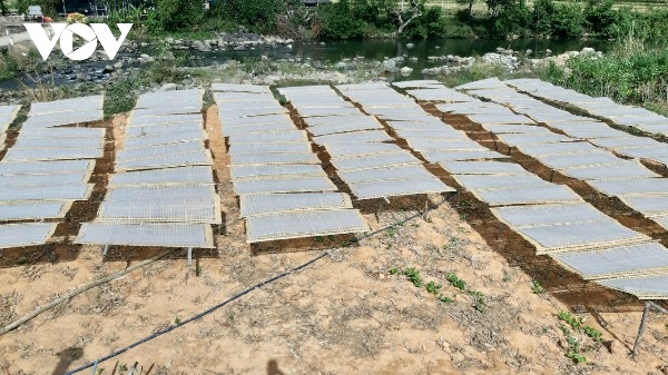 Vào Húc Động - Trung tâm sản xuất miến dong của huyện Bình Liêu sẽ bắt gặp các phên miến được phơi ngay sát bờ suối trong lành
