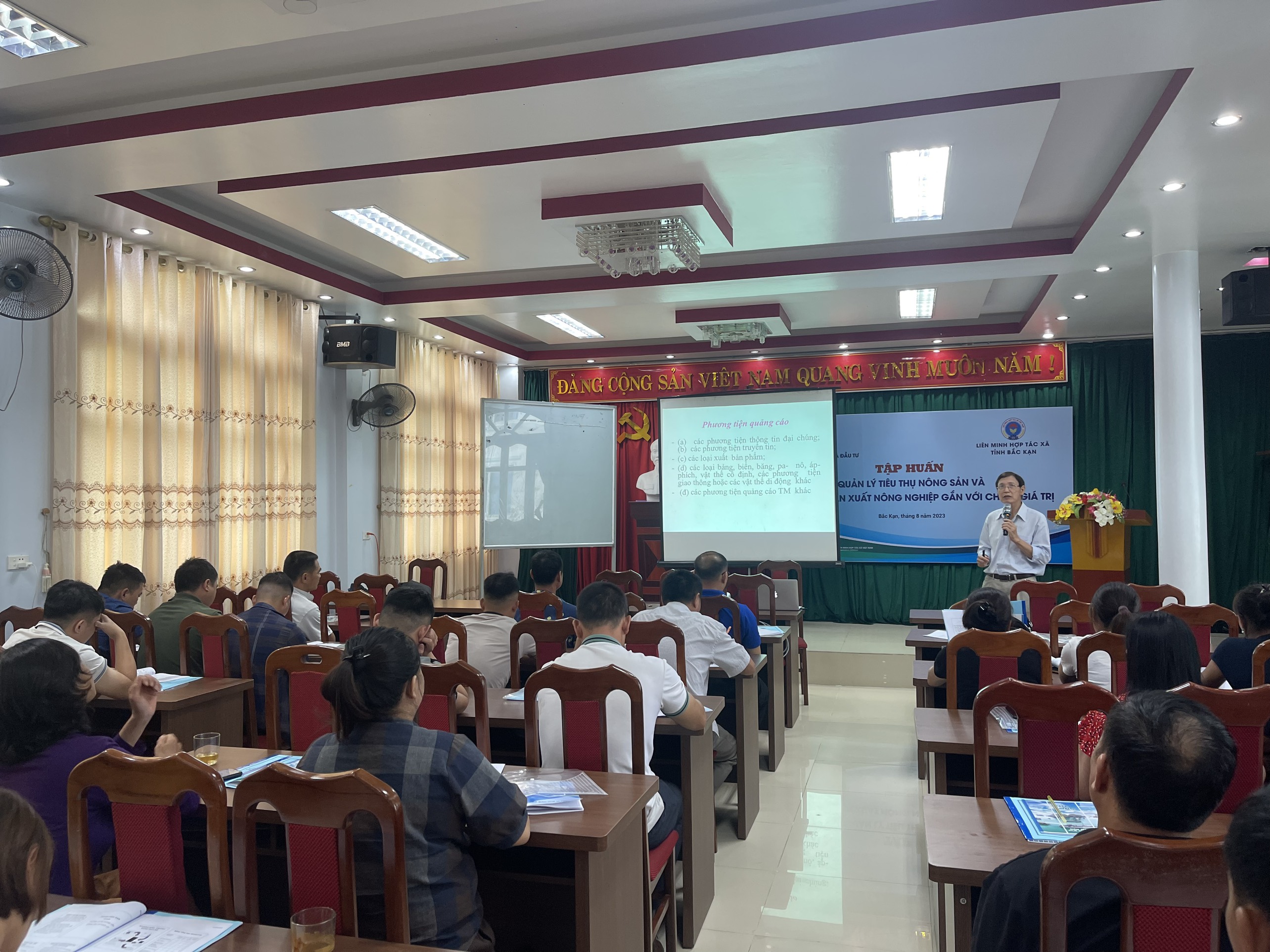 Từ ngày 07 - 08/8/2023, tại thành phố Bắc Kạn, tỉnh Bắc Kạn, Trung tâm Xúc tiến thương mại và Đầu tư Liên minh Hợp tác xã Việt Nam phối hợp với Liên minh HTX tỉnh Bắc Kạn tổ chức: “Tập huấn Quản lý tiêu thụ nông sản và phát triển sản xuất nông nghiệp gắn với chuỗi giá trị” cho 60 cán bộ là Giám đốc HTX và thành viên. Dự và chỉ đạo lớp tập huấn có đồng chí Trần Ngọc Quang, Phó Chủ tịch cùng các chuyên viên phục trách công tác xúc tiến thương mại của Liên minh HTX tỉnh Bắc Kạn.