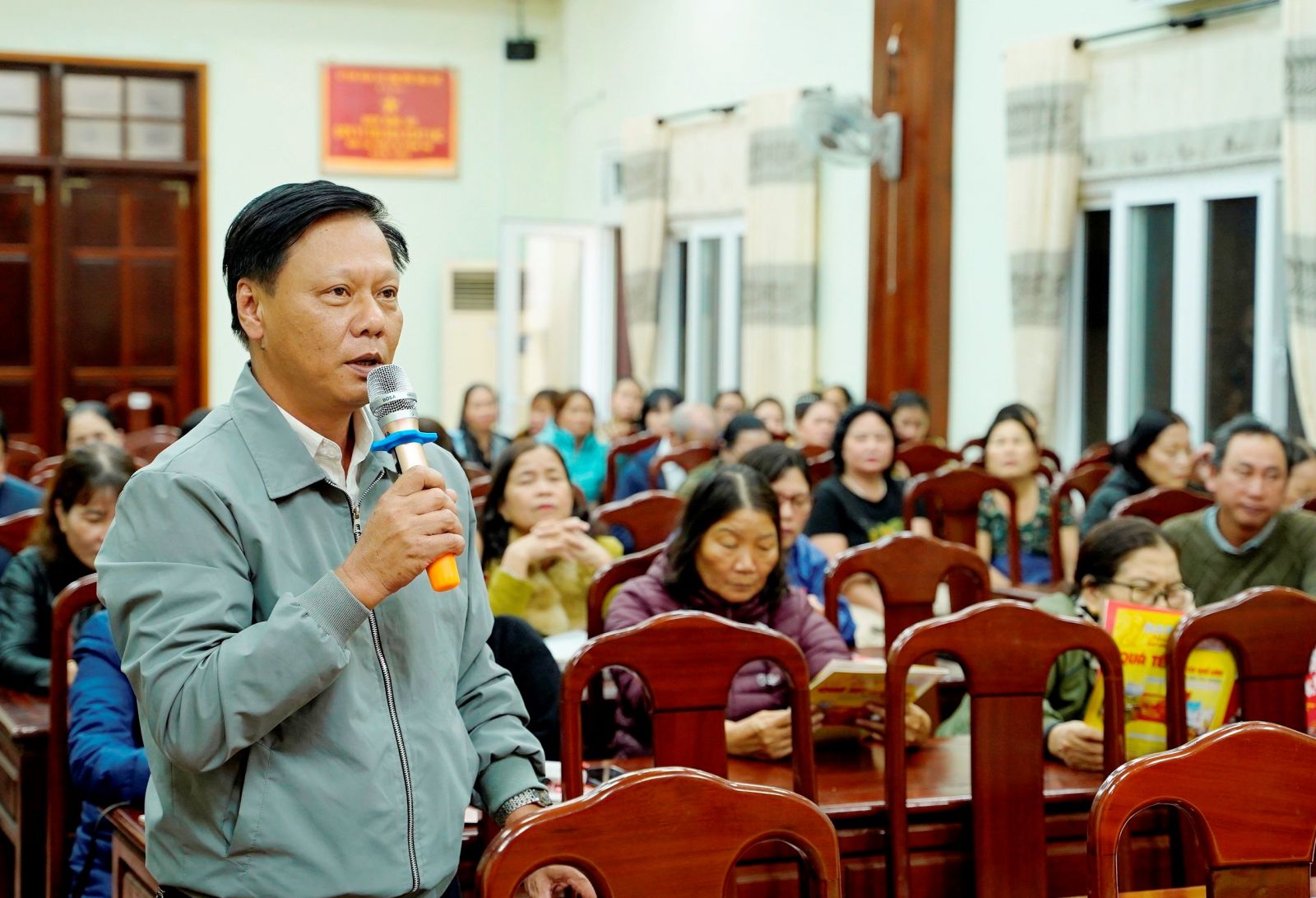Đại diện nông dân xã Dương Hòa nêu một số thắc mắc tại buổi tọa đàm